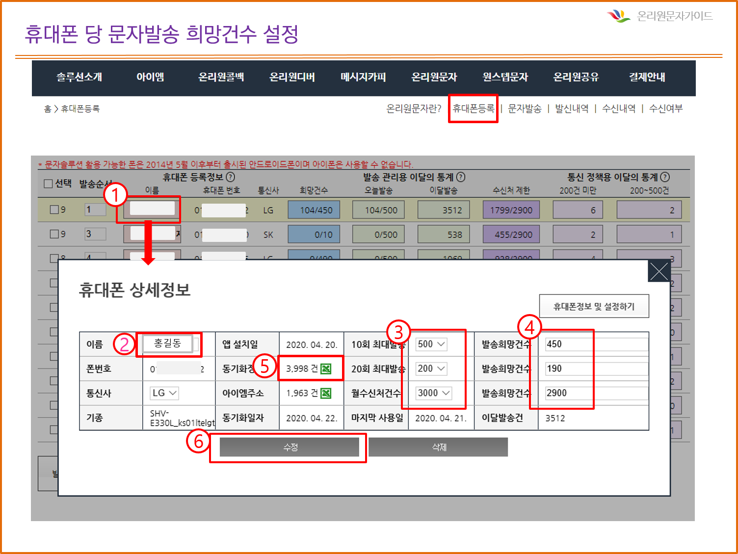 문자 [온리원문자] 발송건수 및 수신처수 직접 설정 2020-04-22 46447